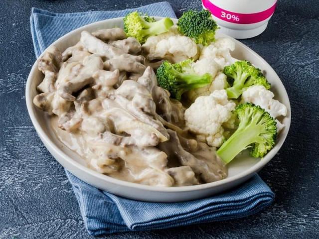 Подавайте бефстроганов из баранины, украсив отварными соцветиями цветной капусты на гарнир, и кушайте с удовольствием!