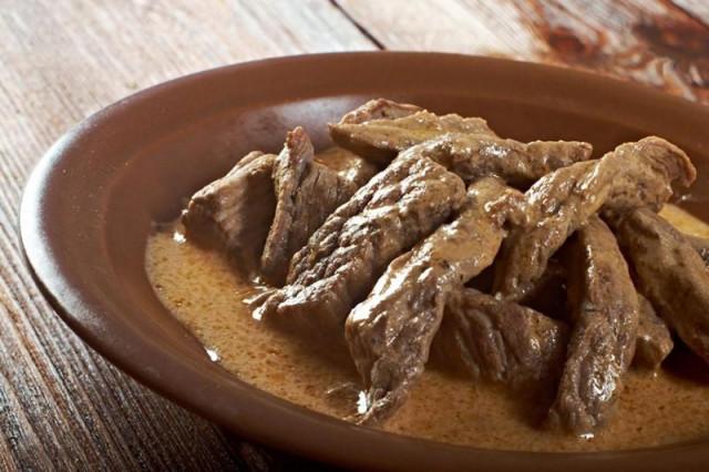 Бефстроганов классический с мукой и сметаной