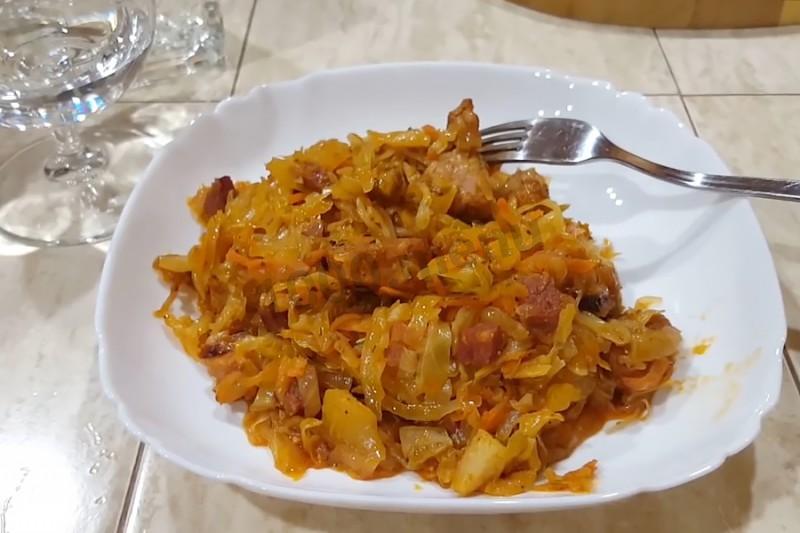 Бигус в казане с копченостями на костре