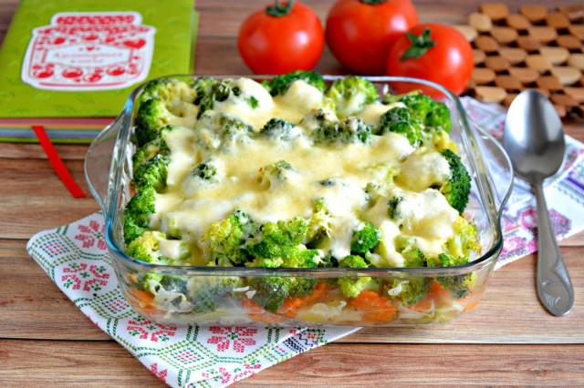 Отправляем брокколи с мясом обратно в духовку на 10-15 минут. Так как все ингредиенты уже готовы, достаточно подождать пока расплавится сыр, сильно зажаривать сыр не нужно.