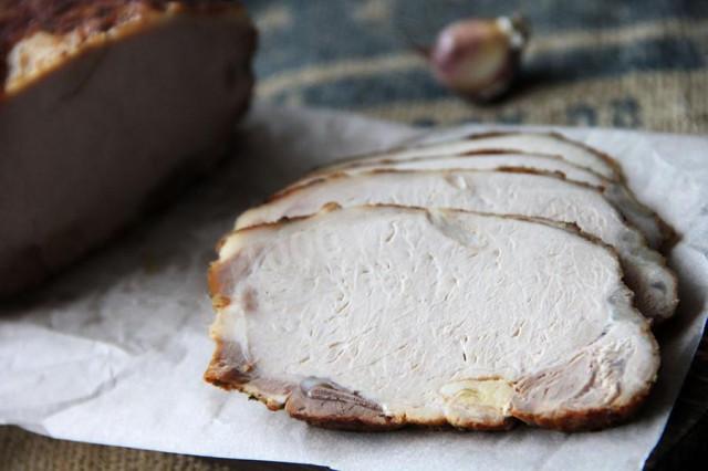Охлажденную буженину режем на тонкие ломтики и подаем на стол!
