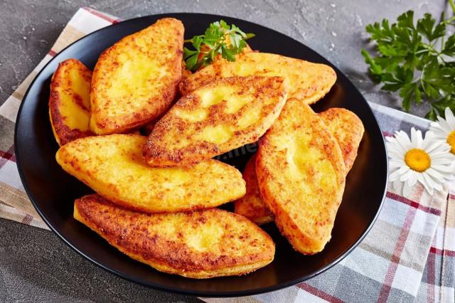 Сыр нарезаем длинными кусочками (примерно длиной 5 см, а толщиной и шириной в 1 см). Делим тесто на небольшие части, каждую расплющиваем в лепешку прямо на ладони. В каждую лепешку вкладываем брусочки сыра сулугуни и заворачиваем сыр, тщательно залепливая тесто. Должны получиться пирожки, похожие на котлетки.