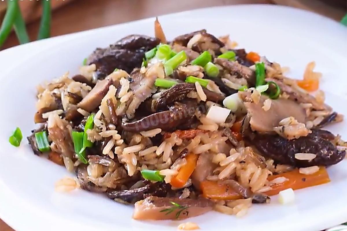 Простой, вкусный, ароматный рис на гарнир! Готовь и пробуй! Дикий рис с сушеными грибами - отличный гарнир к любому мясу! Готовится быстро и сразу в сковородке. Очень удобно!