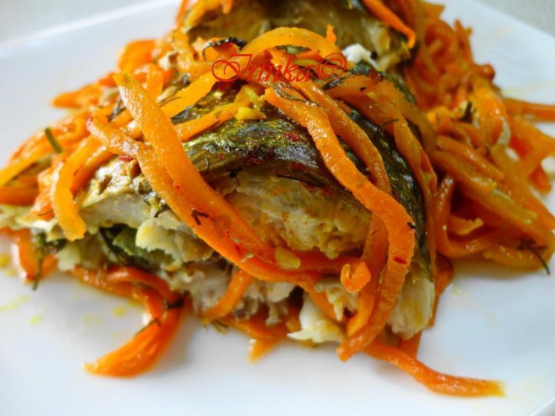 Сверху на рыбу выкладываем оставшуюся морковь.