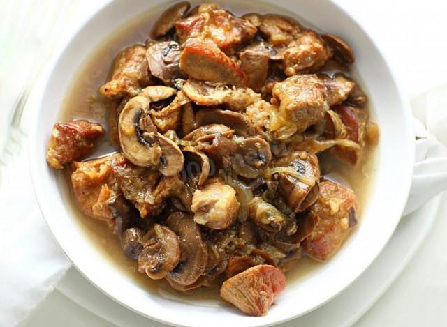 Филе бедра индейки с сушеными грибами тушеное на сковороде