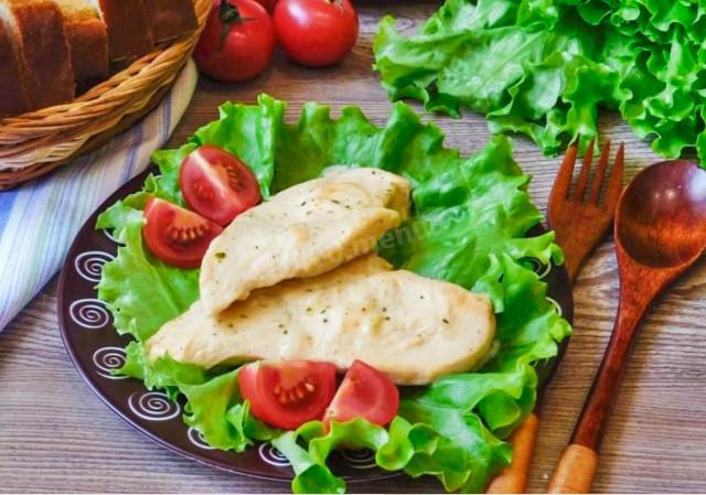 Разогрейте сковороду. Налейте на неё немного растительного масла для жарки. Обжарьте куски куриного филе на сильном огне по 2-3 минуты с каждой стороны. Таким способом вы запечатаете мясные соки внутри, и филе получится очень мягким.