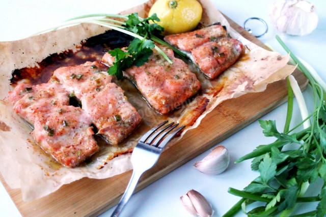 Филе лосося в духовке - просто, вкусно и изысканно. Лосось, запеченный по этому рецепту, порадует всех кого вы угостите своим необычным, праздничным вкусом. Медово-горчичный маринад придает рыбе нотку изыска, необычности. Филе лосося можно подавать на праздничный стол и на обычный ужин.