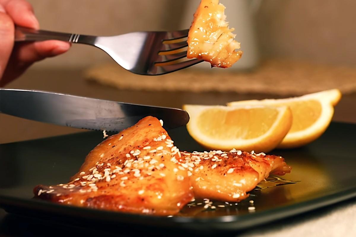 3. Выложите в соус рыбу и готовьте по 1 минуте скаждой стороны.