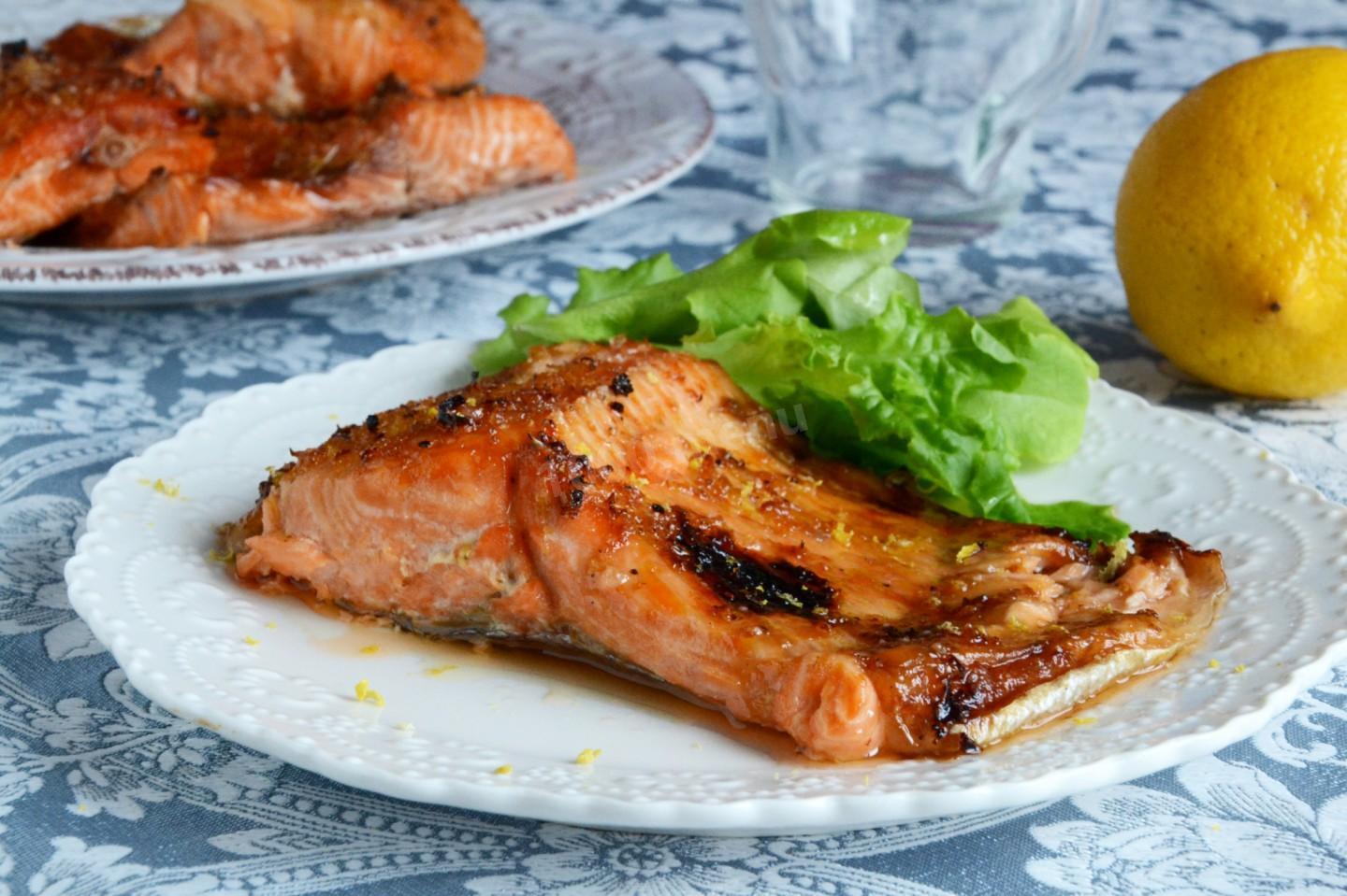 При отсутствии гриля рыбу можно просто запечь в духовке. Не первый раз убеждаюсь, что вкусные блюда не обязательно должны быть сложными и многокомпонентными. Эта рыба - лишнее тому подтверждение. Немного сахара, цедры и соли - вот готов изысканный обед или ужин. Помимо форели можно использовать семгу, горбушу или другую красную рыбу.