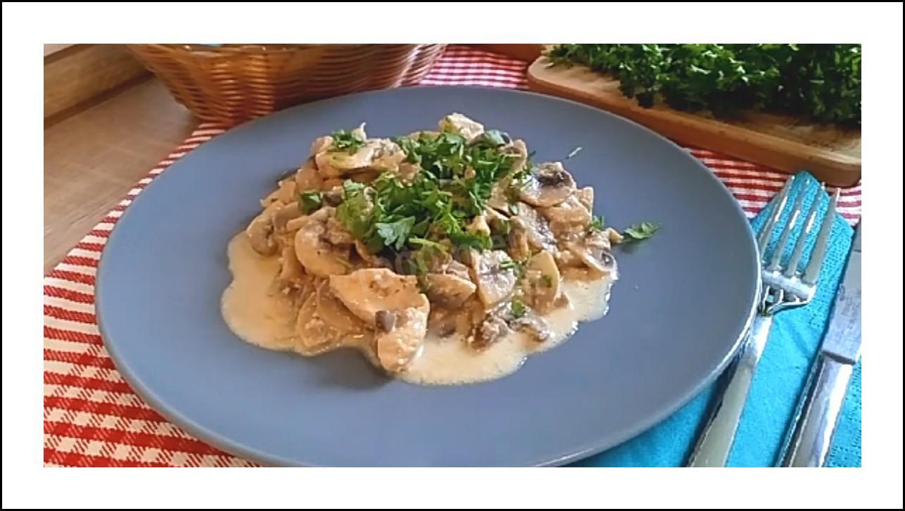 Фрикасе из филе курицы с грибами в сливочном соусе