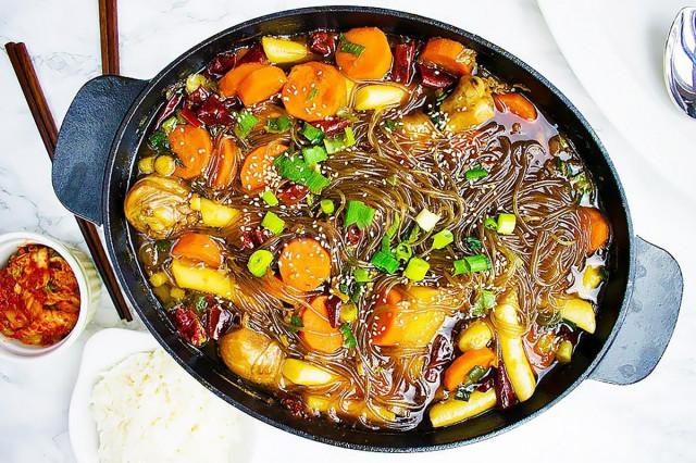 Экзотический ужин в корейском стиле. Попробуй приготовить! Фунчоза с курицей и соусом - корейское блюдо, которое прекрасно подойдет и искушенным едокам, и тем, кто только начинает знакомство с азиатской кухней. Использование кофе помогает убрать "птичий" запах от курицы, но использовать его необязательно. Сушеный чили придает супу более теплый, яркий, согревающий вкус. В зависимости от любви к острому, его можно положить столько же или чуть меньше.