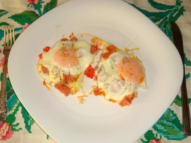 Яичница с колбасой - отличный вариант вкусного и сытного завтрака! Хотя многие и предпочитают лёгкие завтраки, но бывают ситуации, когда нужно плотно поесть, особенно перед дальней дорогой или физической работой. Да и мужчины любят сытно позавтракать, особенно зимой. Поэтому яичница с помидорами и луком, станет тем самым калорийным и вкусным блюдом.