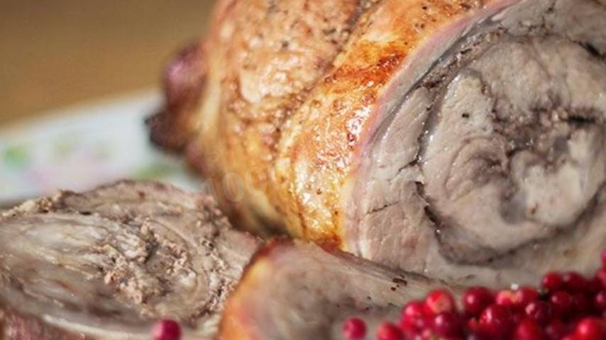 Горячий рулет из свинины с брусникой