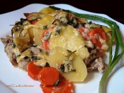 Эффектное блюдо из печеного картофеля с овощами и свининой. Понравилась вертикальная укладка слоёв,отчего блюдо приобретает очень праздничный вид.Вкус блюда очень гармоничный. Картофельный гратин - вкусное блюдо, которое ещё и выглядит очень эффектно.