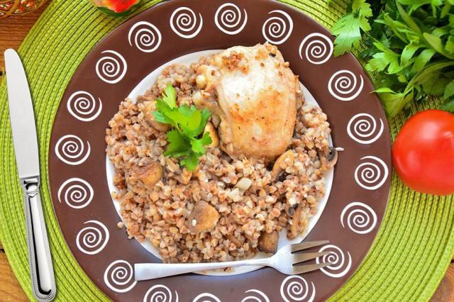 Отличный ужин для всей семьи! Готовить очень просто! Гречка с курицей и грибами приготовленная по данному рецепту получается очень мягкой и при этом остается рассыпчатой. Птица сочная, мягкая, пальчики оближешь! Очень вкусно будет, если подать блюдо со свежими овощами.
