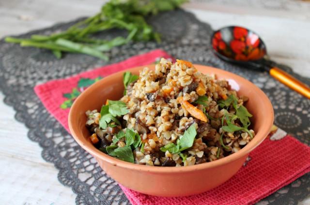 Гречневая каша с грибами, луком и морковью готова - вкусно, сытно, быстро. приятного аппетита!