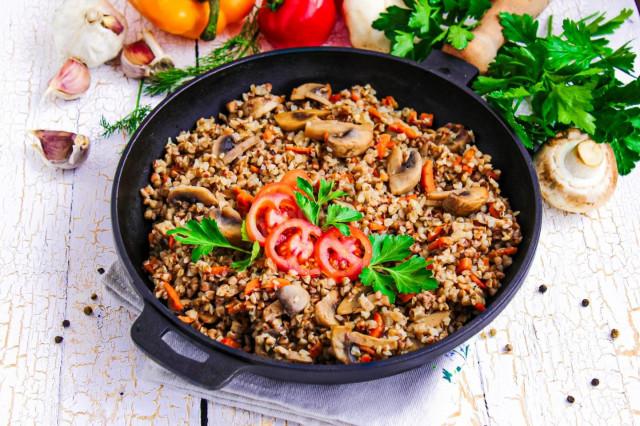 Грибы с гречкой на сковороде
