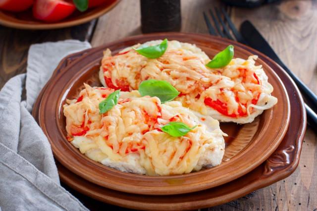 Грудка отбивная с помидорами и сыром