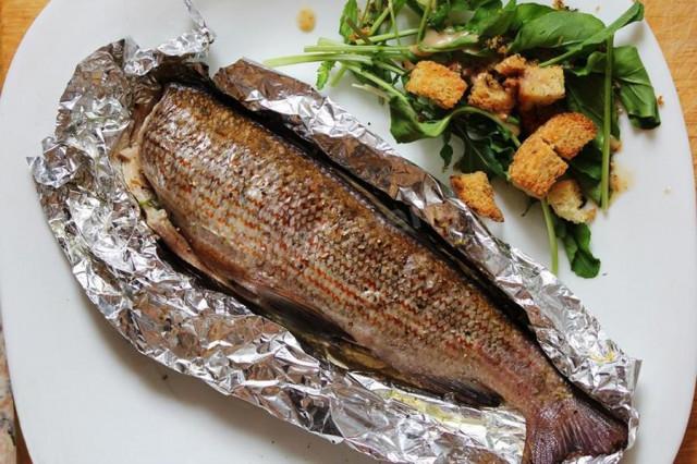 4. Рыбу заверните в фольгу. Важно завернуть ее в фольгу так, чтобы сок при запекании не вытекал.