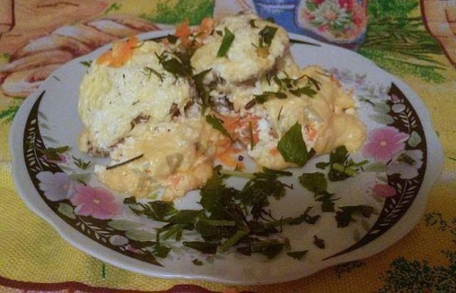 Хек под сырной корочкой в сметанном соусе в мультиварке