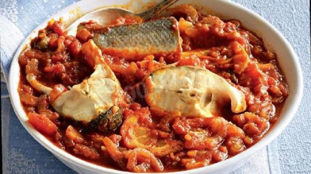 4. Положить в кипящий соус рыбу и тушить до готовности 10 минут;
