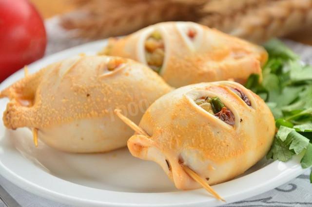 Кальмары фаршированные овощами