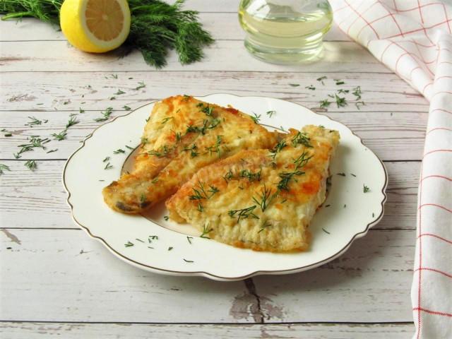 Каждый кусочек рыбы запанировать с двух сторон в мучной смеси.