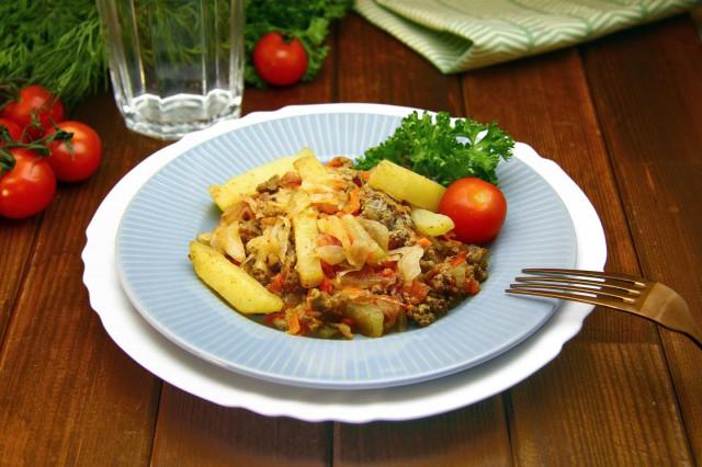 Простое блюдо из доступных ингредиентов для всей семьи. Мне очень понравилось это блюдо за его простое и быстрое приготовление, доступные ингредиенты и отменный вкус. Блюдо пикантное, сытное, но, в то же время, довольно лёгкое. По вкусу лично мне напоминает польский бигус.