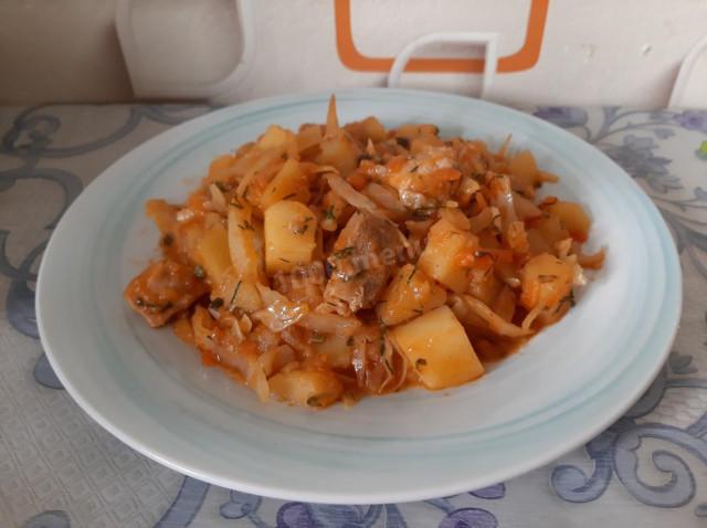 Капуста тушеная с картошкой, томатной пастой и свининой
