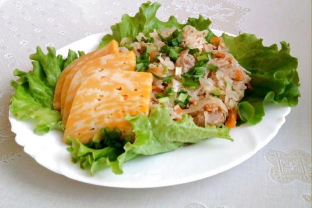 Капуста тушеная с кроликом в сметане в мультиварке