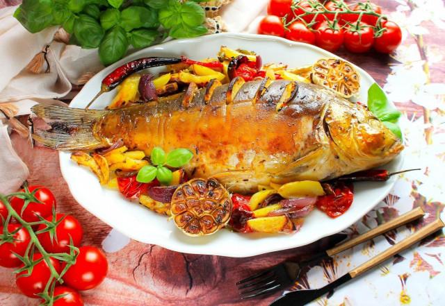 Изумительно вкусно, сытно и невероятно просто! Карп запеченный в духовке с овощами очень полезен. Блюдо получается сытным, колоритным и лёгким одновременно. Прекрасный вариант для праздничного стола!