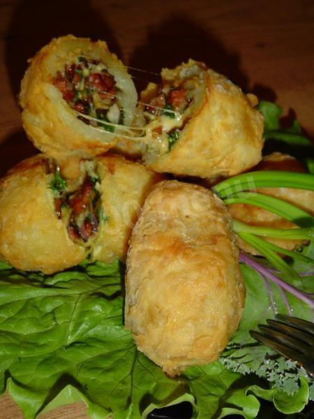Заполнить картофельные половинки полученной массой, соединить их, обвалять в муке, в яйце, в муке.