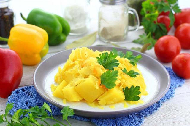 Сытно, вкусно и просто! Только недорогие ингредиенты. Картошка с квашеной капустой тушеная в казане — замечательная идея для домашнего обеда или ужина. Совсем необязательно использовать мясо, чтобы сделать такое аппетитное блюдо для всей семьи.