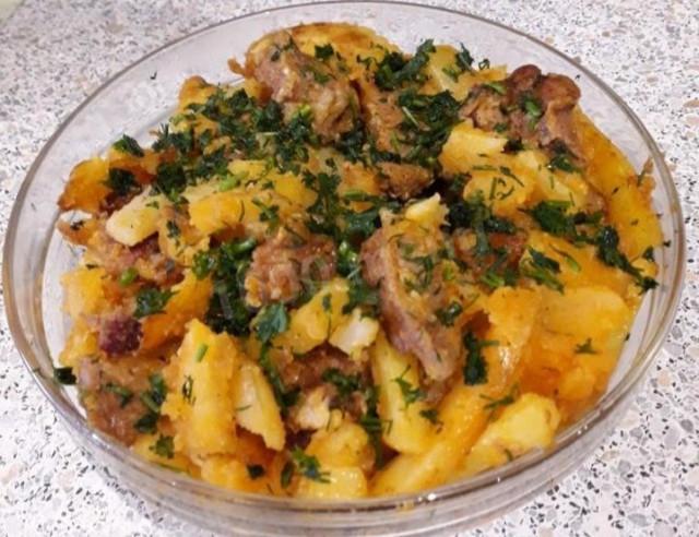 Перекладываем картошку и мясо в глубокую ёмкость и выливаем наш соус. Всё хорошо перемешать. попробуйте на соль, если не хватает добавьте