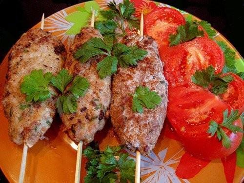 С кулинарным рецептом кебаба турецкого особого из баранины я познакомился в одном из приморских кафе, а приготовив, оценил и листик с ним занимает почетное место на кухне. Готовится эта еда без особых усилий. Прежде всего мелко нарезаю мясо и сало. Затем нарезанные мясопродукты посыпаю перцем, рубленным луком и мелко нарезанной зеленью. После всего этого все солю, руками, смоченными в воде, формирую из фарша средних размеров "сардельки", в центр каждой помещаю деревянные шампуры и на пару часов ставлю в холодильник. Затем быстро обжариваю кебабы на раскаленной сковороде и подаю к столу с острым покупным соусом или кетчупом. От этого кулинарного рецепта придут в восторг ценители восточной кухни, да и любому придирчивому гурману он тоже очень понравится. Приятнее всего есть кебаб турецкий особый из баранины с хрустящим лавашом. Конечно, по всем правилам кебаб нужно готовить на мангале или электрогриле. Если он имеется в хозяйстве, то приготовление кебаба из баранины может стать прекрасным поводом для "пикника на балконе", если за окнами лето, а выбраться на природу не получается.