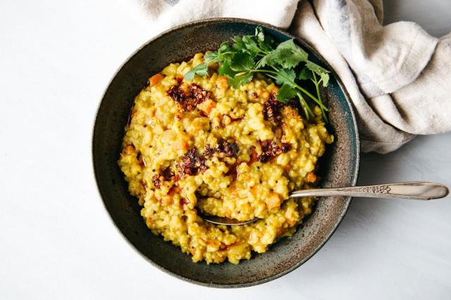 Пробуем кичри на вкус, добавляем соль при необходимости. Подаем готовое блюдо горячим, дополнив по желанию маслом чили и свежей зеленью, например, кинзой, петрушкой или укропом.