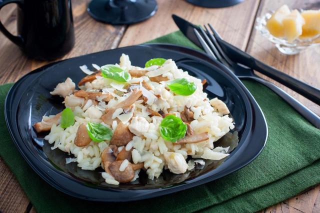 Ароматное ризотто с куриной грудкой и шампиньонами. Вкусный ароматный рис с курицей и шампиньонами понравится всем членам семьи. Для разнообразия семейного ужина, и на удивление гостей, можно приготовить блюдо с привкусом Италии.