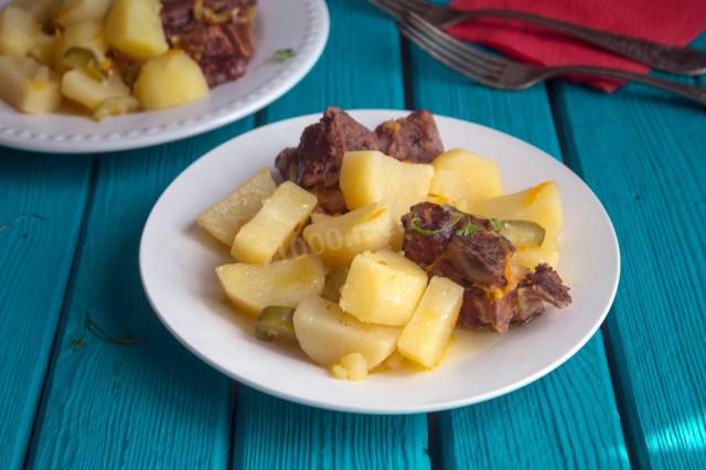 Копченые ребрышки с картошкой в мультиварке