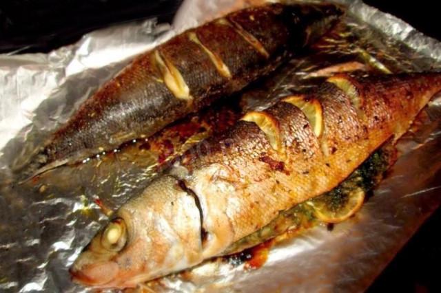 Если требуется, разморозьте, очистите от чешуи рыбу, вырежьте жабры. Сделайте надрез вдоль брюшка и выньте внутренности. Хорошенько прополощите тушку и обсушите ее. Обильно полейте лимонным соком, посолите, поперчите, добавьте любимых специй. Сделайте на тушке надрезы.