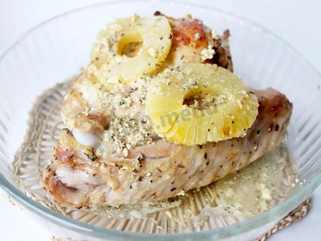 Крылья индейки в сметанном соусе с ананасами