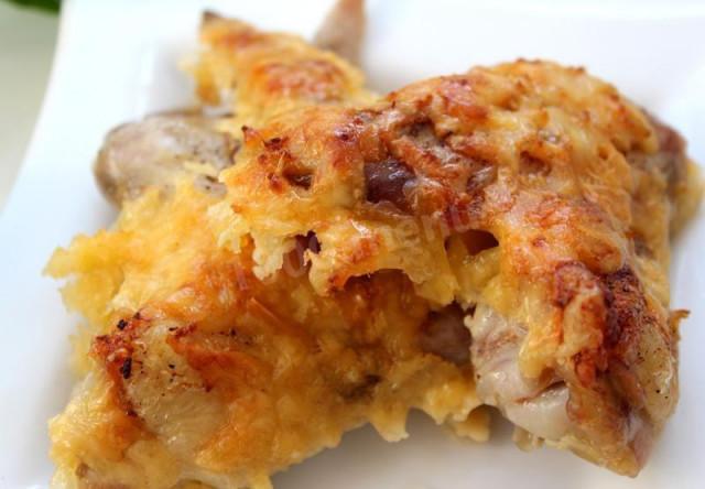 Хорошенько промываем под проточной водой куриные крылышки. Теперь обтираем их солью, смешанной с черным и красным молотым перцем. Обмазываем сливочным маслом противень, укладываем на него куриные крылышки и запекаем в духовом шкафу (уже нагретом до 180-ти градусов) примерно сорок минут. Поскольку наша еда предполагает наличие соуса, начинаем его готовить, пока пекутся крылышки. Натираем на крупной терке твердый сыр, а на мелкой – острый свежий хрен. Смешиваем сыр с хреном и вливаем в полученную массу белое вино. Вынимаем крылышки, перекладываем их в более удобную форму с высокими стенками, заливаем винным соусом и снова отправляем в духовку на медленный огонь. Здесь наша курочка должна простоять не меньше двадцати минут. Как только на ней образуется румяная корочка, а по кухне пойдет вкуснейший аромат, наше блюдо можно считать готовым.