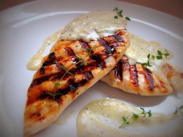 Нежнейшая курочка поразит всех и видом, и ароматом!!! Сочное филе с аппетитными полосочками гриля и сливочно-острый соус, мм Соус это чуть ли не главная составляющая блюда. Хорошим соусом можно даже спасти неудачный рецепт. Я всегда экспериментирую с ними. Люблю подавать мясо с различными соусами, а этот вариант вам несомненно понравится)