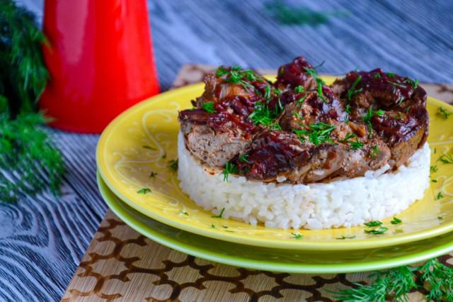Жаропрочную форму слегка смажьте растительным маслом с высокой температурой дымления. Переложите в нее печень со специями и луком.