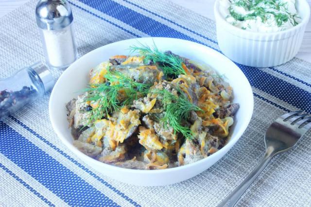 Нежнейшая и вкуснейшая печень со сметанной заливкой. К этому блюду подойдут самые разнообразные гарниры. Я каждый раз для такой печени готовлю разные: то картофельное пюре, то макароны, то крупы. Советую и вам также разнообразить свою меню при помощи смены гарнира. Также не забудьте подать салат из свежих овощей или консервацию - смотря, какое время года.