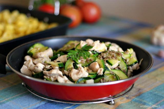 Очень быстрое блюдо! Приготовь идеальный ужин за 15 минут! Куриная сковорода с кабачками - простое блюдо, идеально для тех случаев, когда нужно приготовить основное блюдо, а силы и время уже на исходе. За четверть часа можно получить нежнейшее мясо с овощным дополнением, которое подойдет к любому гарниру.