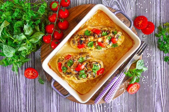 Куриное филе с грибами и сыром в духовке