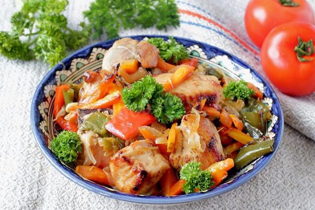 Птица с овощами - идеальное вкусовое сочетание! Курица с луком и морковью приготовленная на сковороде выглядит весьма аппетитно! Для данного блюда не обязательно использовать филе, можно взять окорочка или грудку, будет так же вкусно. Курица с овощами выступает как самостоятельное блюдо, но для сытности ее можно дополнить гарниром из картофеля.