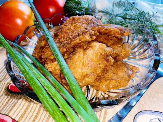 Куриное филе в кляре из соевого соуса с мукой и яйцом