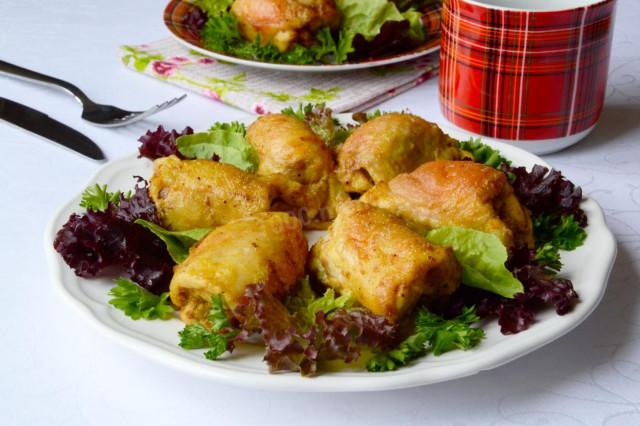 Выложить бедрышки в форму для запекания. Запекать в разогретой до 180 с около 50 минут.