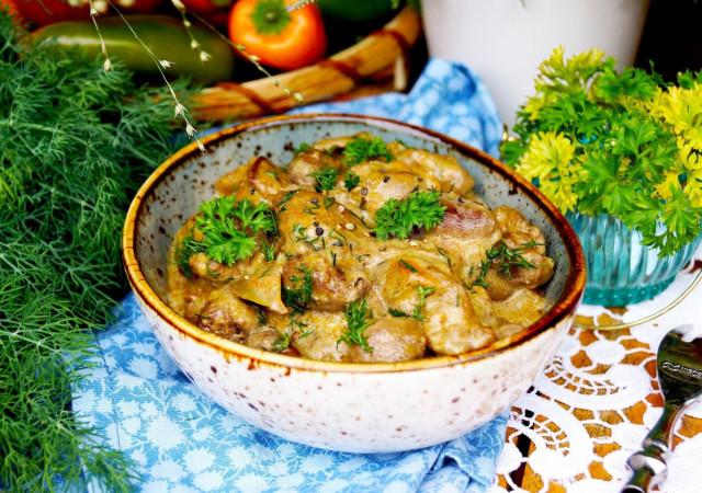 Вкусные, сытные, сочные, в нежном бархатистом соусе! Куриные сердечки и печень в сметане на сковороде необыкновенно удачно сочетаются - это отличный выбор, когда нужно быстро и сытно накормить семью. Блюдо бюджетное и в то же время очень вкусное!